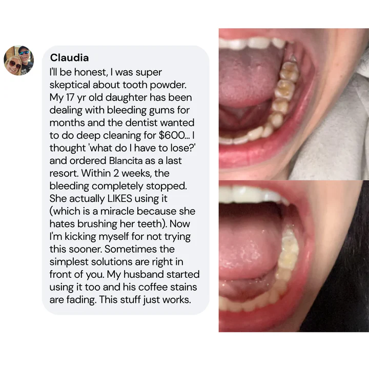 Most people start seeing results in 4 weeks, and full stain removal in 8. That’s why we recommend the 3-month bundle. Right now, it comes with a free Blancita Tongue Scraper. 🦷✨
